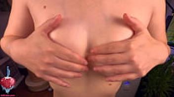 Young, natural, oiled breasts touched