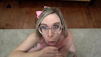 Sweet 18-year-old Tasha with a delicate cum swallow and a wonderful blowjob wearing nerd glasses