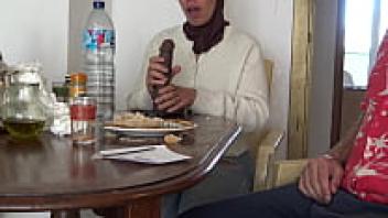 EXTREME TURKISH FAMILY: my stepson loves my hairy pussy by purchasing large dildos
