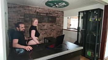 The hardcore amateur blonde latina with the large boobs and the big ass, having rough sex with her muscular big cock personal trainer