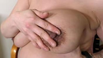 Shione Cooper, who is nine months pregnant, is bouncing and sucking her breasts.