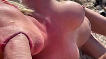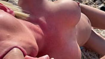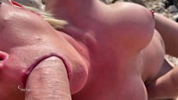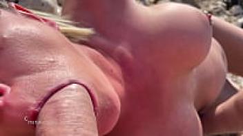 CumShoot in My Pussy Opened by Speculum in a Pregnant Blow Job with a View of My Big Tits on the Beach