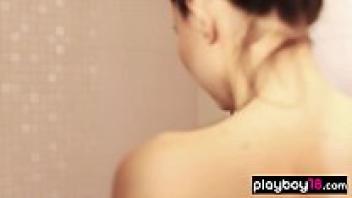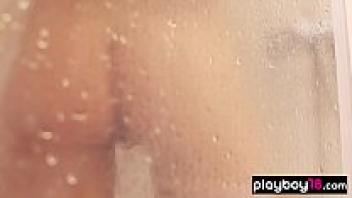 After taking a shower, the perky-titted beauty flaunts her flawless figure.