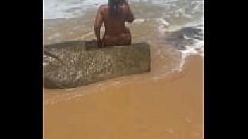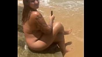 Walking on a beach while naked