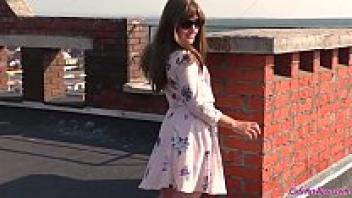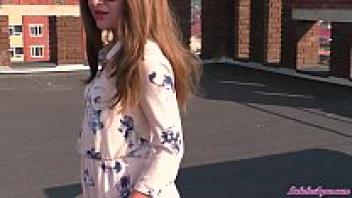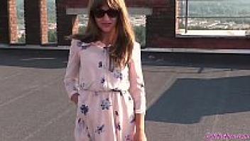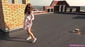 Passionate blowjob, dog love, and a seductive student on the roof—outdoor