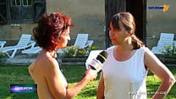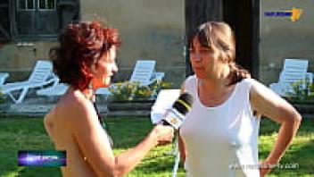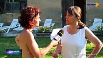 A nudist beach in the forest was visited by an impudent traveler who fingered a naked woman.