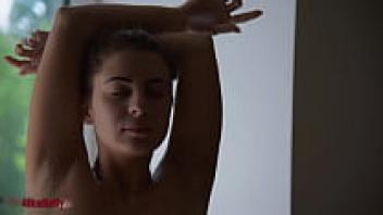Undressing and fingering her tight pussy, a big ass girl