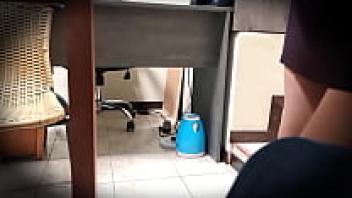 Nataly, a nymphomaniac Mexican secretary wearing an upskirt and no underwear