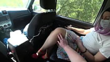 Strapon-loving lesbians in a car. POV of a hairy pussy and big ass.