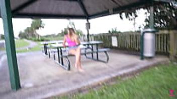 While on a public beach, Brandi Bae performs a random handjob on a stranger.