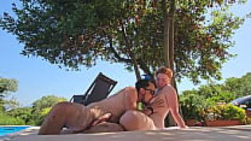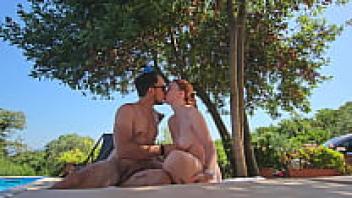 Having sex in public by the pool! Creampie!