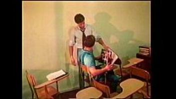 Sucked by an older, more experienced gay is a young amateur with glasses.