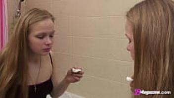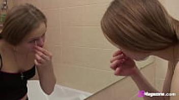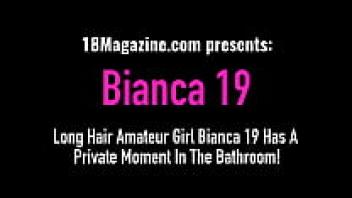 Bianca 19, an amateur girl with long hair, has a private moment in the restroom!