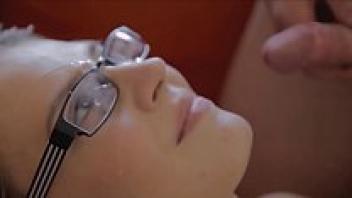 It turned out that the nerdy girl with glasses was actually a nymphomaniac and a lover of sperm on her face.