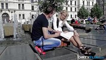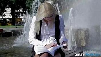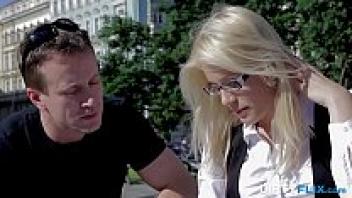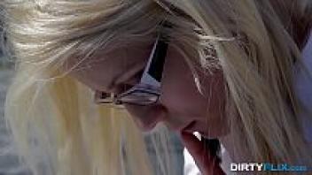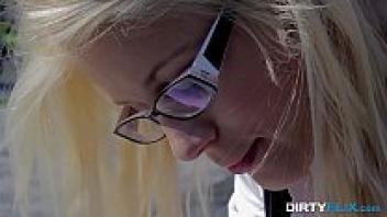 Sweet Cat, a geeky girl, is pleased with Dirty Flix's cumshot on glasses.
