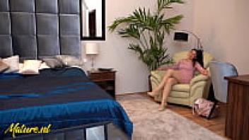 A mature, lustful wife gets her hairy, trimmed pussy extremely wet.