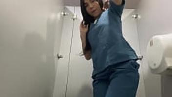 In the hospital bathroom, an amateur camera captures a large enormous ass. As a Latina nurse