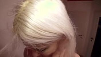Raelyn, a slender blonde, swallows the cumshot after getting her pussy loved!