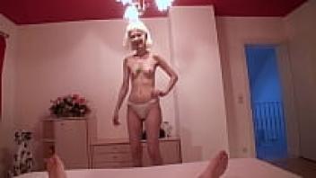 Greetings, LadyBoy. A ladyboy wearing black underwear gets plugged.