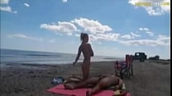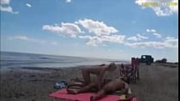 Cuckold lounging on the beach while he makes his wife feel loved