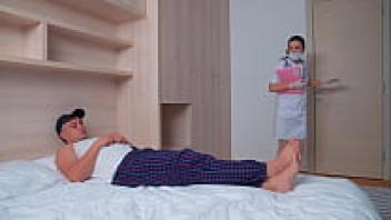 The nurse does a hand job on the patient and then causes him to ejaculate three times.