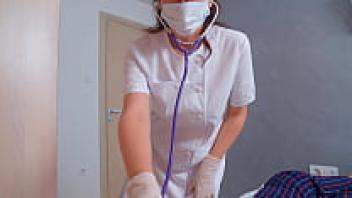 A patient came and convinced him to have sex with the horny and attractive nurse who was rubbing her vagina in the doctor's office.
