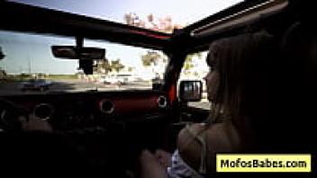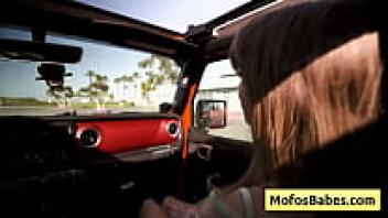 A slender and attractive blonde entices her friend Charles Dera and Leila Cove by flaunting her attractive figure on the beach.