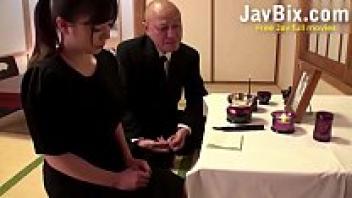 In the uncensored Japanese adult video game, a young Japanese stepdaughter uses a blowjob to rouse up an elderly man.