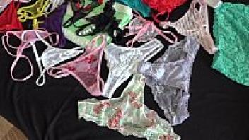 At a picture shoot, a sexy model with a large ass and a hairy pussy tries on a variety of underwear. Fetish.
