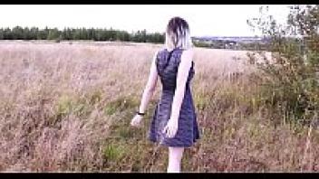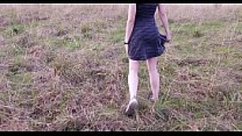Public POV of a gorgeous adolescent in a nice dress falling in love outside
