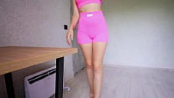 After working out, kinky pussy rubbing and orgasm with yoga pants