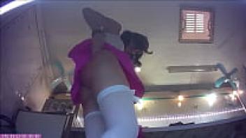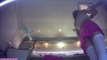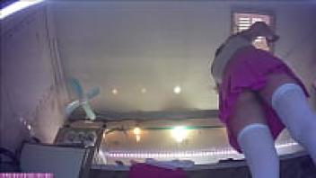 A lovely young brunette girl is preparing for her first workplace upskirt flashing session.