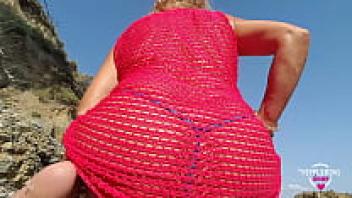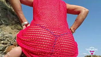 Extreme nipple piercings and a hot flashing asshole pussy at a naked beach