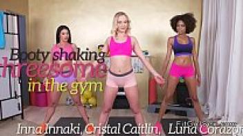 At the gym, three horny lesbians are having fun.