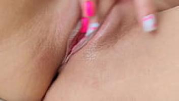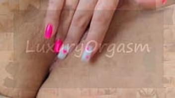 Using tiny fingers and a pink manicure, masturbate a young, pink pussy to achieve an orgasm. close-up. Luxurious Orgasm