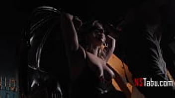Arya Grander is featured in this seductive and voluptuous spandex bondage sexy video. She is gagged and tied.