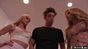 Sorority tgirls Ella and Kate share a cock.