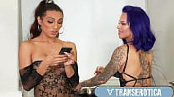 Natalie Stone, who is both slim and transgender, has had anal creampied by Big Dick babe TS Foxxy!
