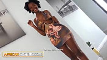 To get booked, a naughty 18-year-old Ebony hottie is willing to suck a big cock producer.