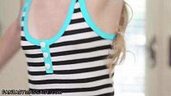 After receiving a fantasy massage, an 18-year-old girl's stepdad destroys her pussy.
