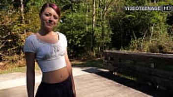 A cute eighteen-year-old girl participates in her first porn interview