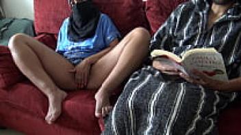 When her parents are not home, a virgin Muslim girl touches her hairy pussy.