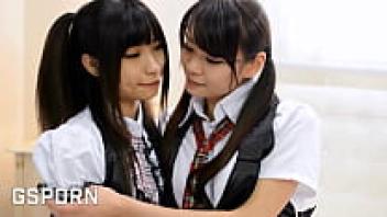 Lesbian sex using a double dildo and strapon with two teenagers at a Japanese school