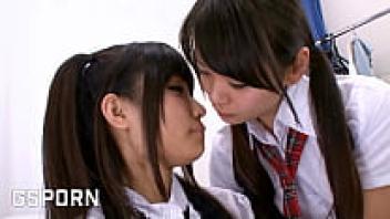 Double Dildo and JAV Lesbian Strapon's uncensored love affair with two petite teenagers