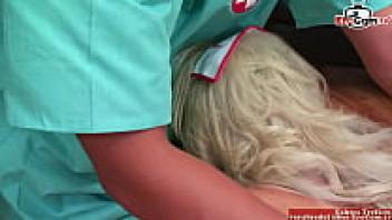 Inked blonde Milf Nurse with enormous boobs seduced the doctor.