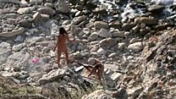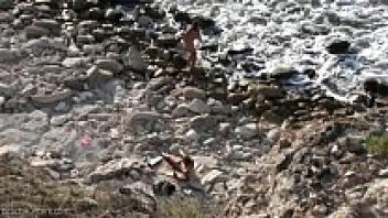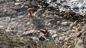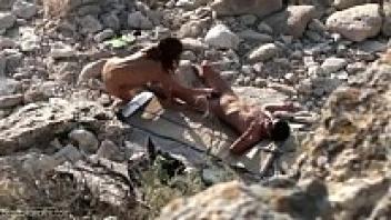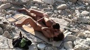 On a nudist beach, having sex with an escort