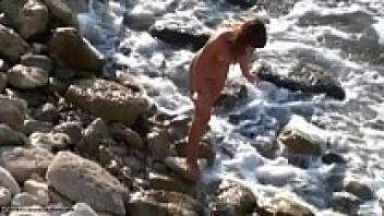 Stranger Voyeur Entices Slim Nudist Teen Aliz to Have Beach Ass Sex