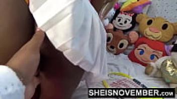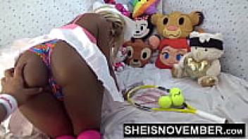 Lubricated a young girl's tight sphincter, sticking filthy fingering in Sheisnovember's cheeks after her pink thong was pulled down, revealing her shaved pussy