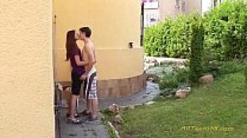 A young, slender adolescent has sex after