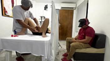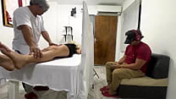 A pervert posing as a physiotherapist doctor gives his gorgeous wife erotic massages while he waits next door.